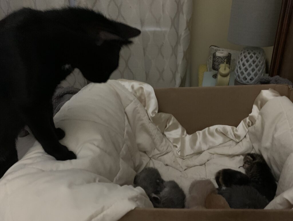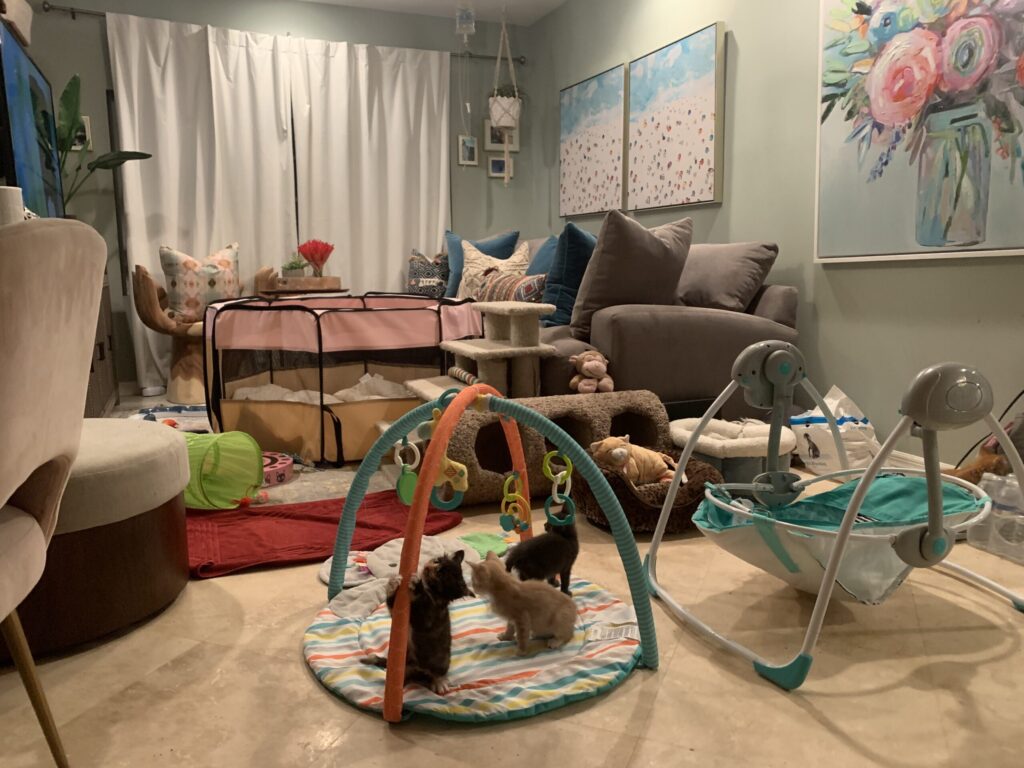 Since the number of Jill’s fosters and adoptions continued to climb, Jill created a home nursery dedicated to foster kitties. The nursery includes: wall cat mazes, pack and plays, playpens, toys, in addition to supplies for bottle feeding babies (heat lamps, heating pads, medicine, weight scales, etc).